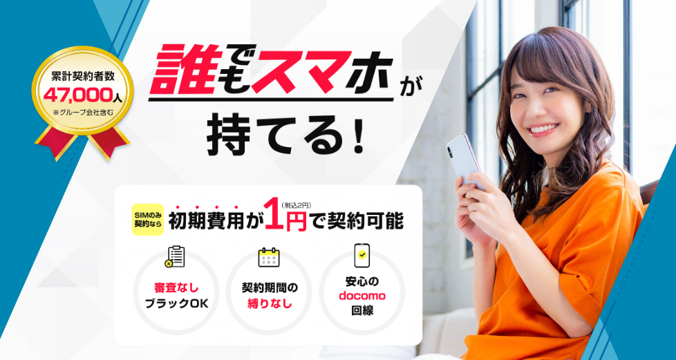 2023年1月16日よりサービスを開始した「誰でもスマホ」は、文字通り“誰でもスマートフォンの契約ができる”サービスです。過去に携帯電話を滞納し、所謂「ブラックリスト入り」してしまった方でも、必要な身分証さえあればご契約が可能です。