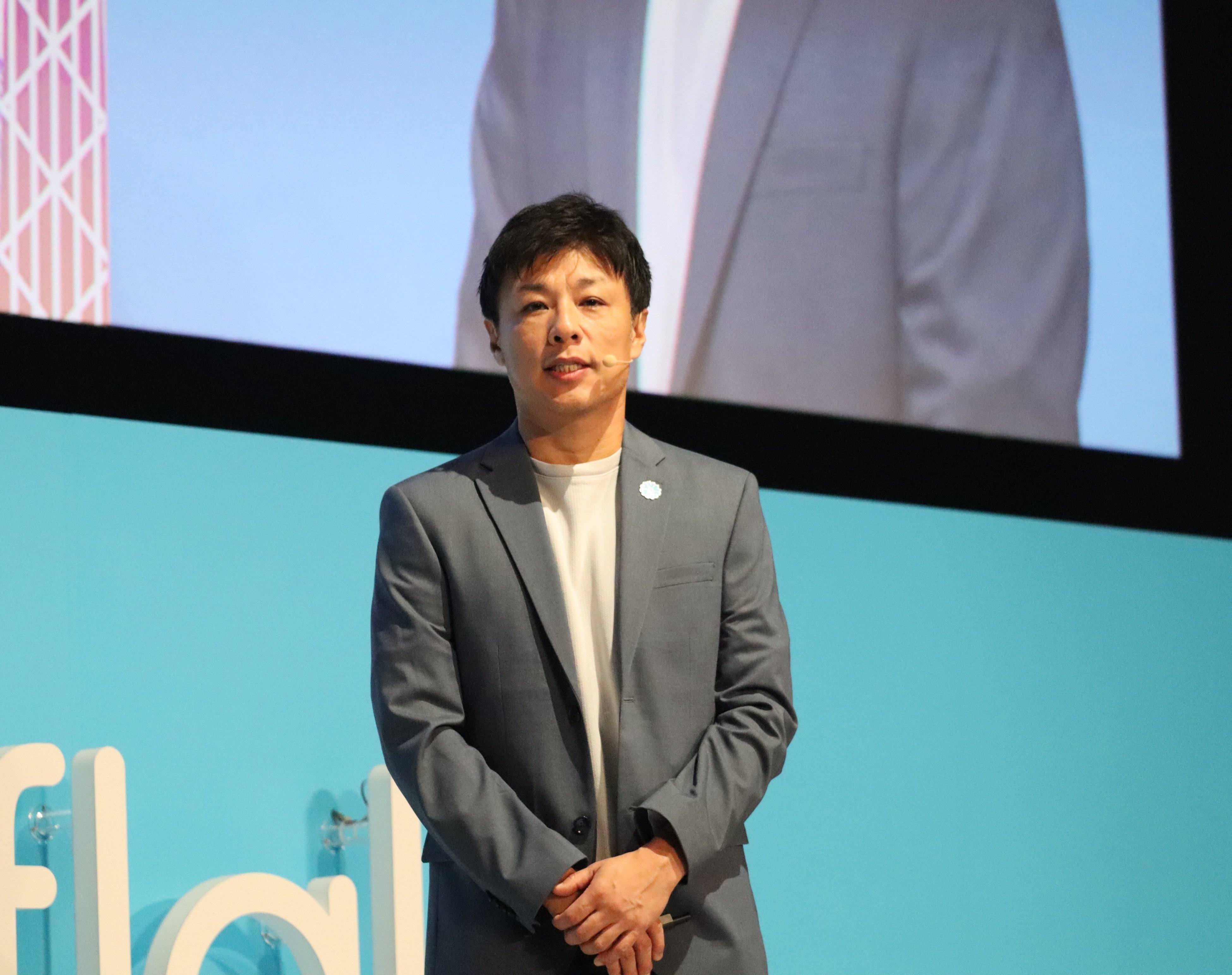 基調講演は会場約1000席に加え、オンライン配信とサテライト会場からの中継を実施。冒頭、社長執行役員の東條 英俊は満席の御礼とともに「今年特に私たちが力を入れているのが、24社に及ぶ国内のお客様事例発表。また、パートナー企業様の展示やセッションも大切なポイント」と話し、見どころを紹介しました。