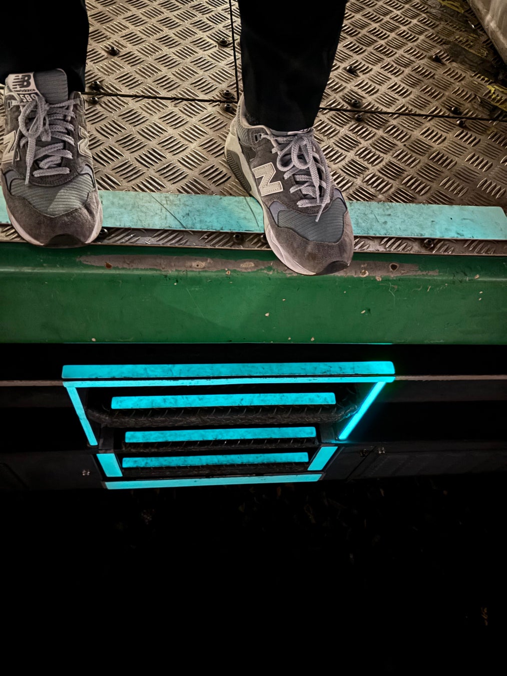 今回導入された対策ツールは、高輝度蓄光素材、反射材、滑り止め加工などを複合的に組み合わせたハイブリッド構造を採用し、電源を使用せず、また照明ライトにも反応する機能により、昼夜や照明の有無を問わず設備形状を視認可能にしています。