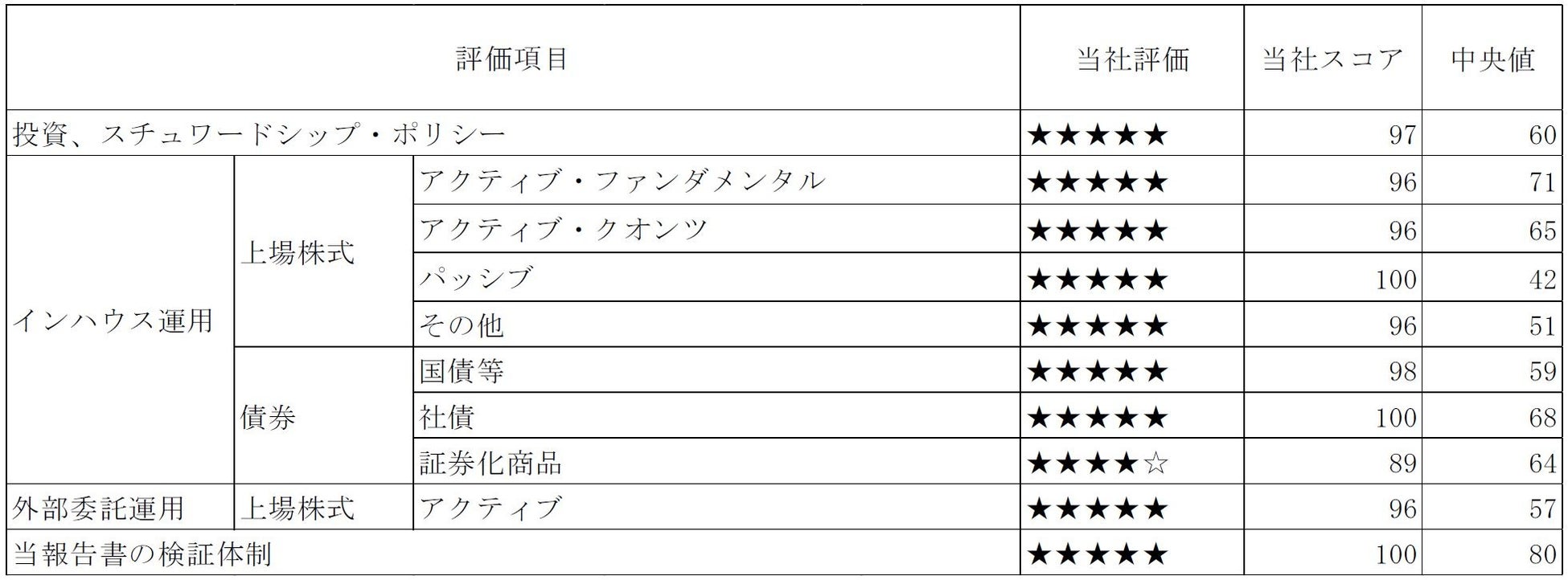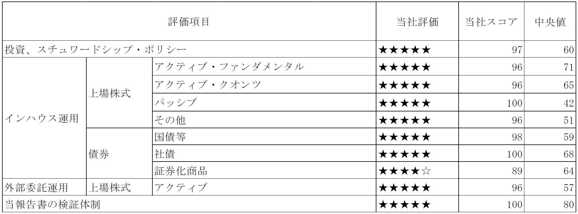 PRI署名機関は、毎年、各分野の責任投資の取組状況に関する報告書をPRIへ提出する義務があり、その報告書を元にPRIが年次評価を行ないます。今回の評価は2022年の活動を対象としており、各項目のスコアにおいてもそれぞれの中央値を大きく上回る結果となりました。当社は2006年5月PRIに署名後、一貫して責任投資に取り組んでおり、今回の評価獲得はこうした取り組みを積み重ねてきた結果であると考えています。