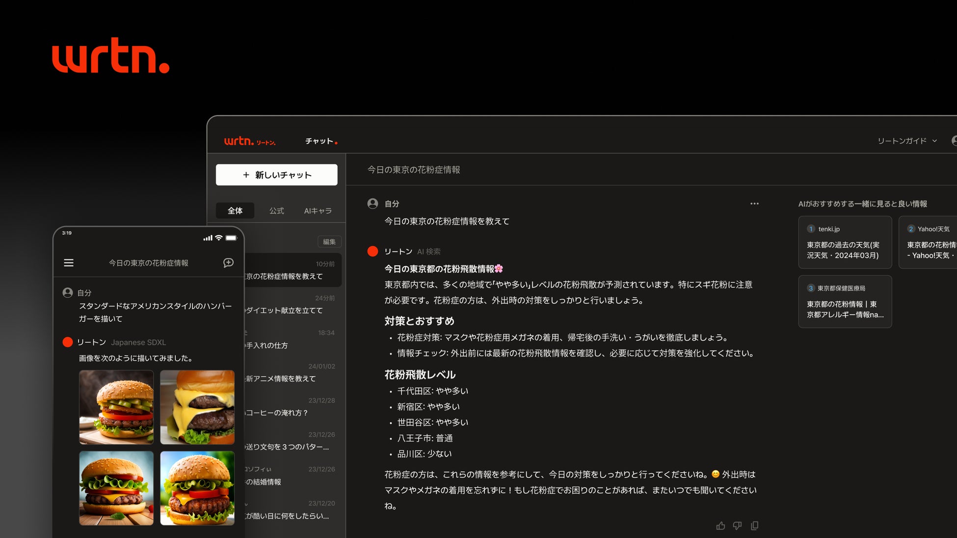 「wrtn(リートン)」 は、ChatGPTなどの大規模言語モデル(LLM)を含む生成AIをベースとしたチャットサービスです。GPT-4やClaudeなどの最新AIモデルを無料無制限で利用することが可能で、生成AIに詳しい知識がない方でも、自由に、そしてさまざまな文章や画像などのコンテンツ作りにご活用いただけます。
