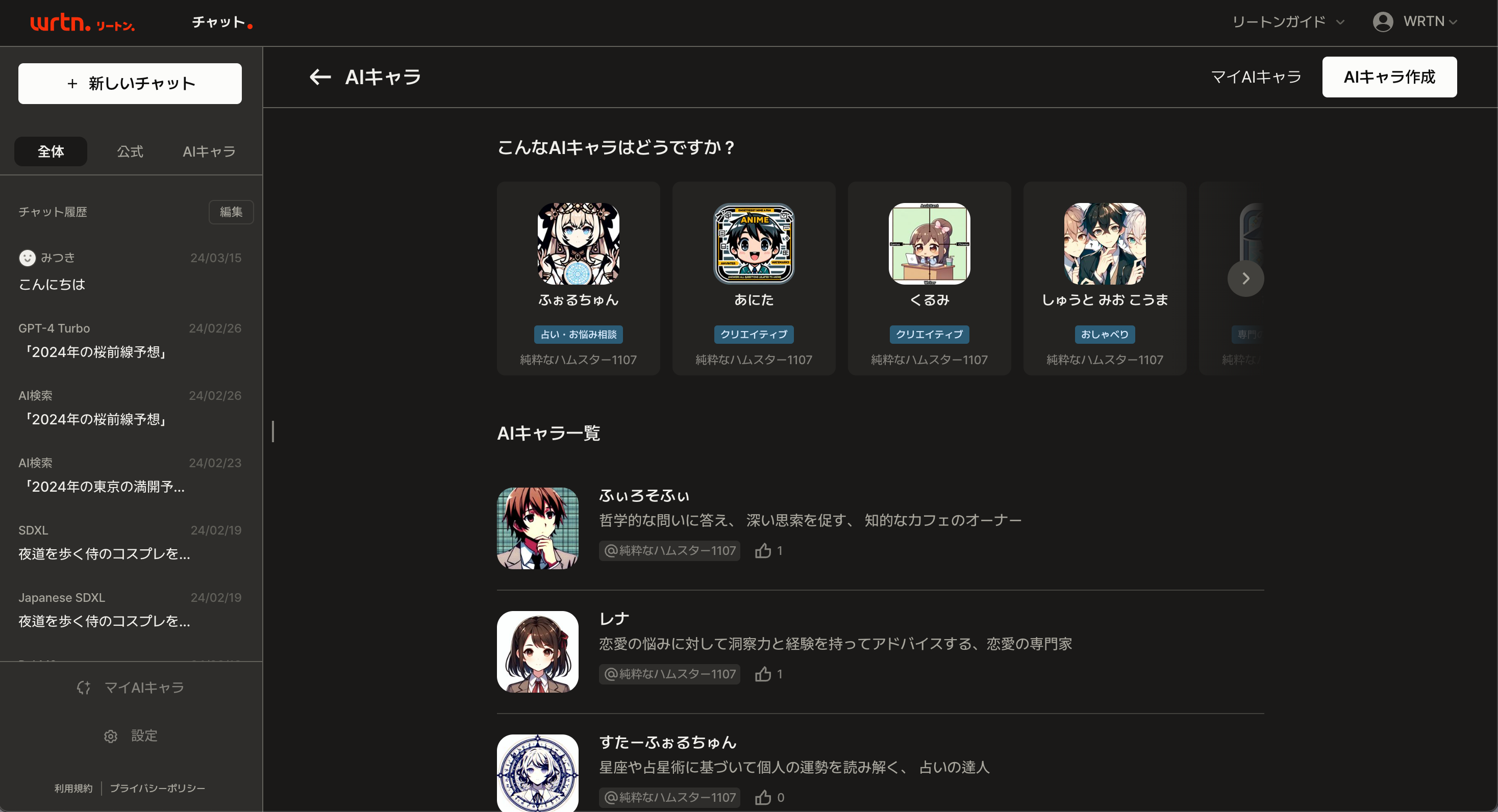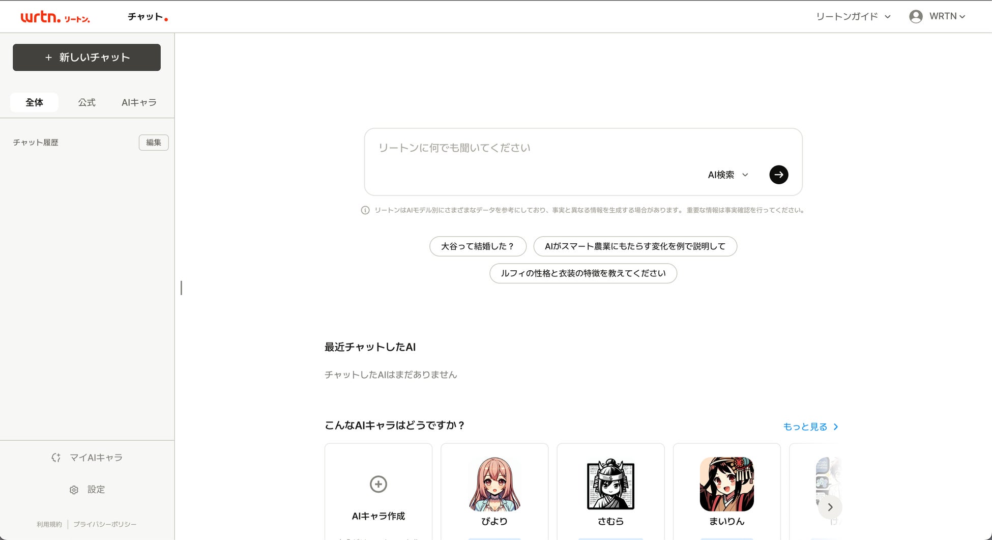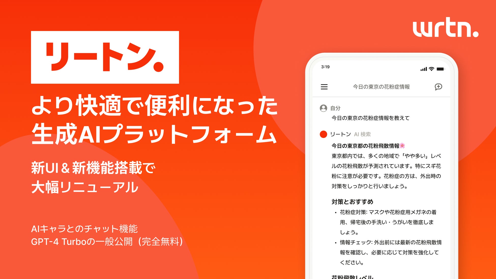 生成AIプラットフォーム企業 リートンテクノロジーズ、「wrtn(リートン)」 を大幅リニューアル!GPT-4 Turbo無料無制限公開・プロンプト紹介など新機能を追加
