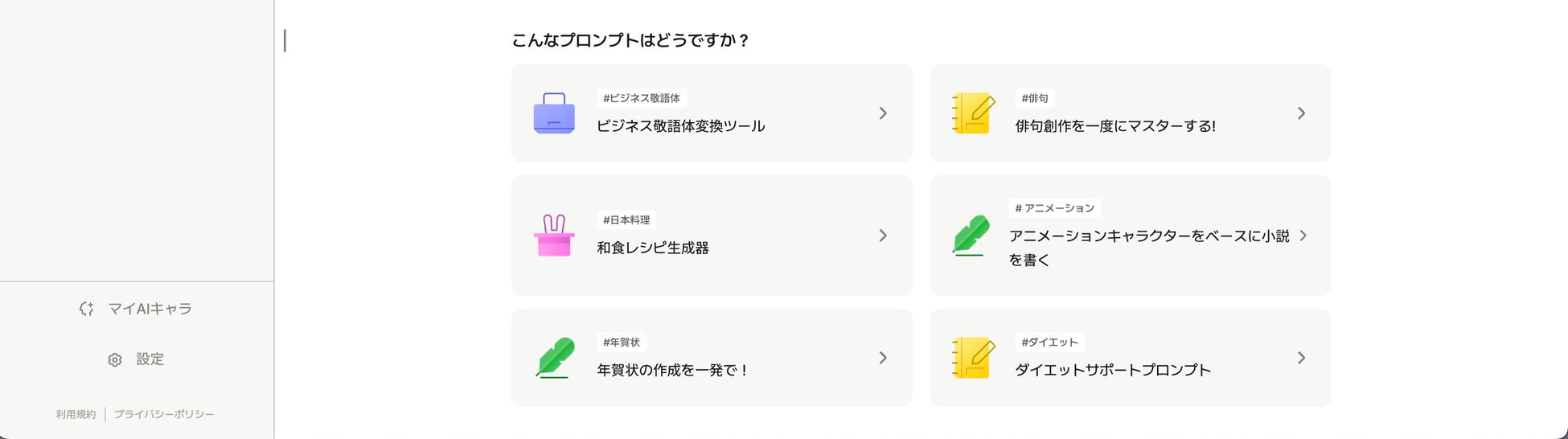 様々な特徴を持つキャラクターと会話ができる 「AIキャラ機能」 を追加。 「科学の原理をわかりやすく解説してくれるキャラクター」 や 「星座や占星術に基づいて個人の運勢を読み解くキャラクター」 など数多くのAIキャラクターが存在します。
