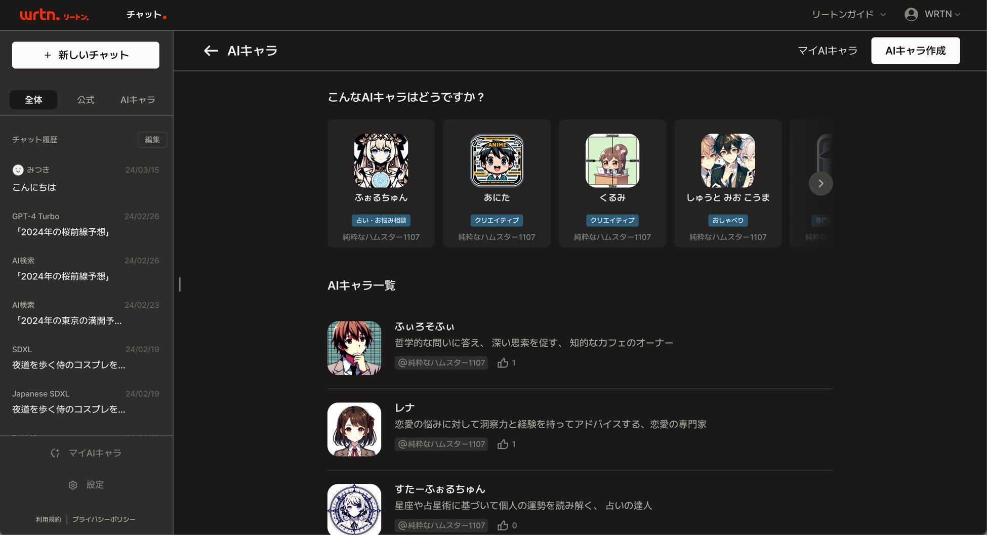 また、AIキャラ作成機能を使えば、自分好みのキャラクターを作成して会話を楽しむことができます。