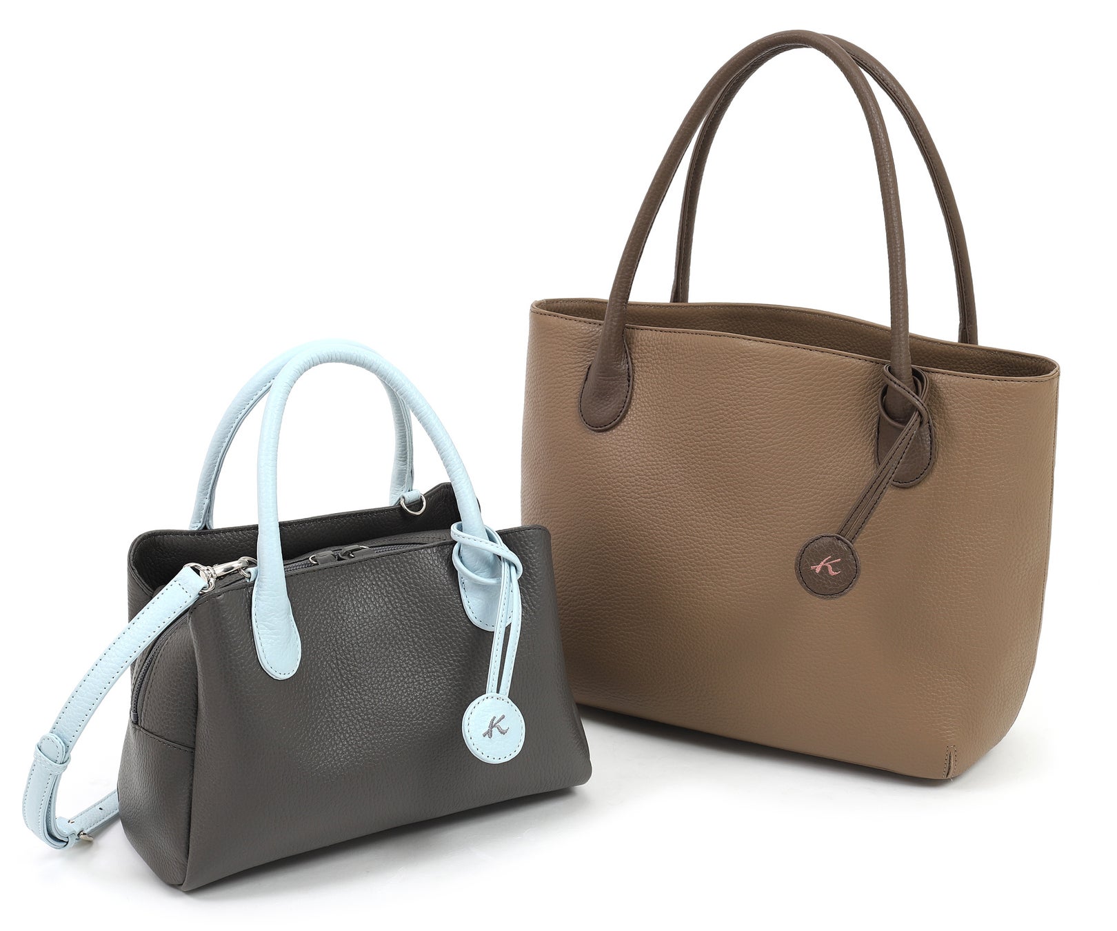 Kマーク入りのタグがワンポイントの牛革バッグシリーズ。やわらかなシュリンク牛革を使用しており、デイリーユースにおすすめ。
