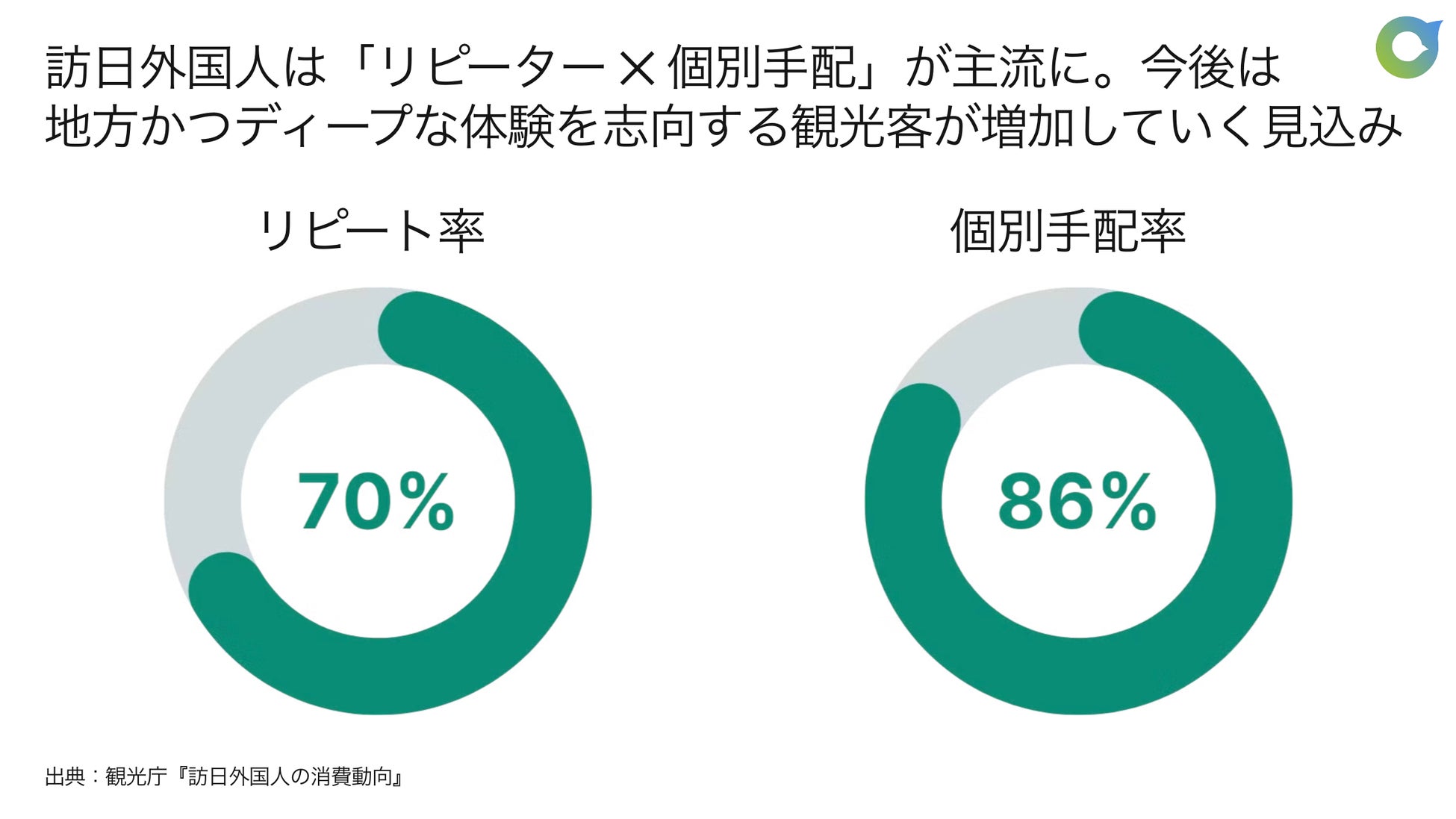 また、近年は訪日観光客の動向にも変化が見られます。東京、箱根、富士山、名古屋、京都、大阪等を巡るいわゆる「ゴールデンルート」ではなく、より地方かつディープな観光体験を志向する観光客が増加しています。こうした観光客はツアーではなく個別手配で旅程を組み立てる傾向にあります。