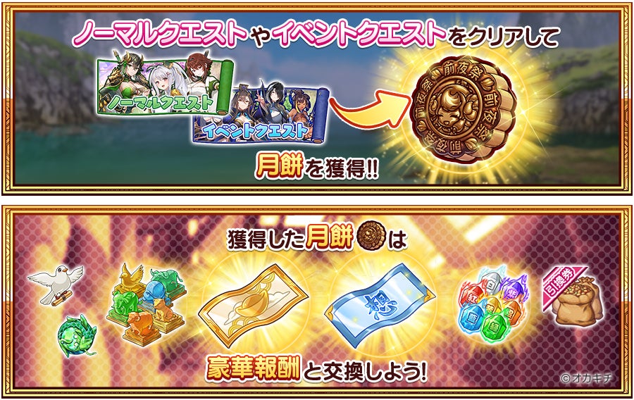ノーマルクエストやイベントクエストで月餅を集め、ガチャチケや玉獣などの豪華報酬を獲得しよう!