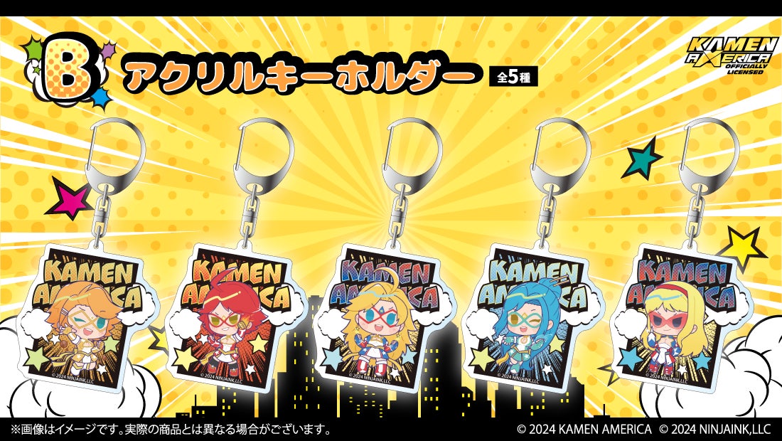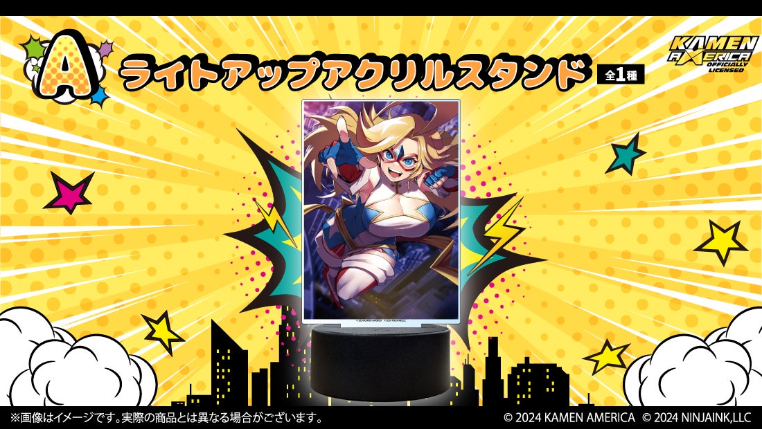 A賞は「仮面アメリカ」公式イラスト、B賞C賞はくじクリフオリジナルミニキャラのラインナップとなっている。