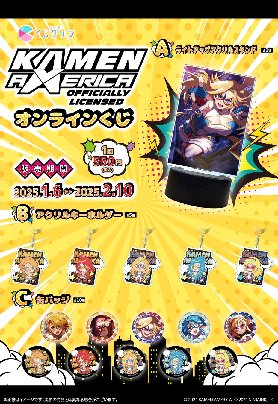 株式会社サトクリフ(本社:東京都千代田区 代表取締役社長:加藤 勝)は、運営するオンラインくじサービス「くじクリフ」より「仮面アメリカ」オンラインくじを、2025年1月6日(月)10時より販売します。