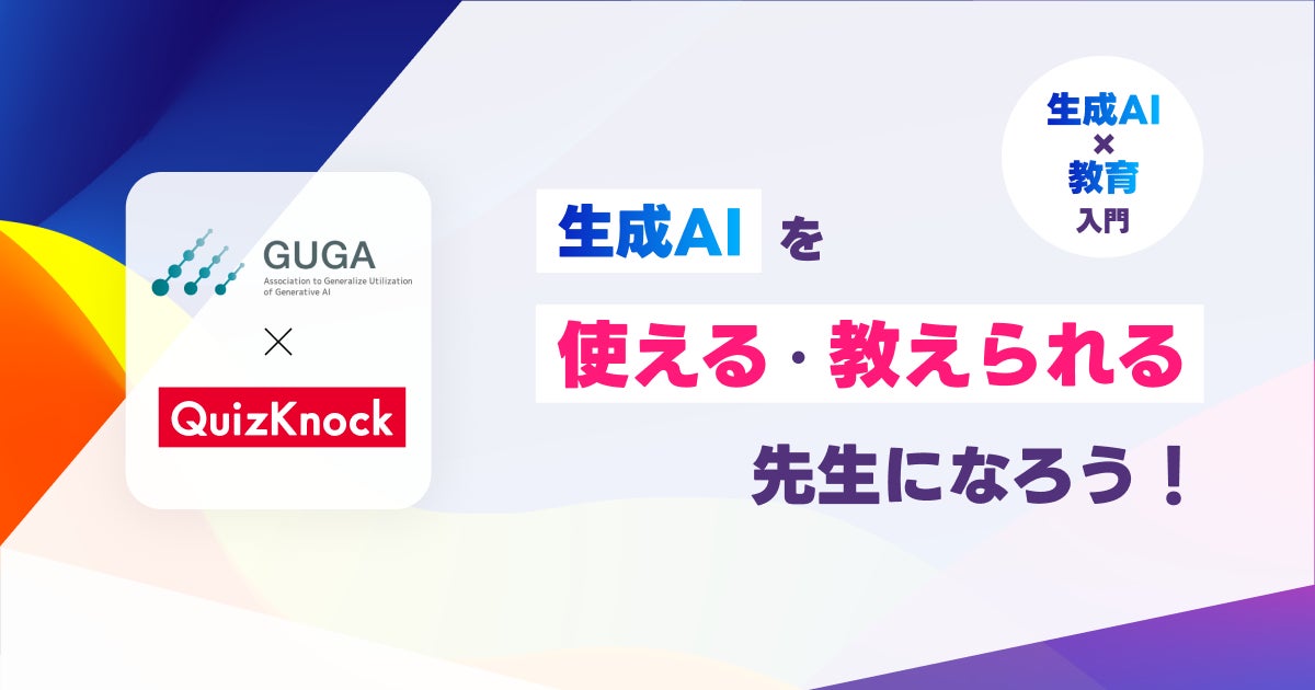 生成AIを社会に実装し、産業の再構築を目指す一般社団法人生成AI活用普及協会(理事長:井畑 敏、所在地:東京都千代田区、英称:Association to Generalize Utilization of Generative AI、以下:GUGA)は、株式会社baton(代表取締役:衣川 洋佑、所在地:東京都品川区)が運営するQuizKnockとのコラボイベント「【生成AI×教育入門】生成AIを使える、教えられる先生になろう!」(以下:本イベント)を2024年3月17日(日)13:00〜15:30に開催することをお知らせいたします。
