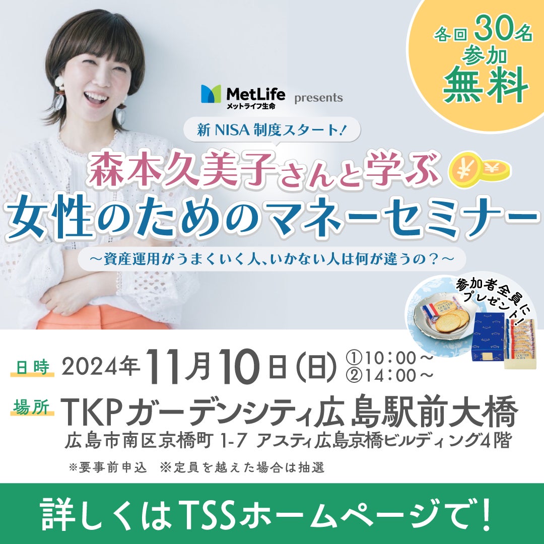 森本久美子さんと学ぶ女性のためのマネーセミナー開催!資産運用がうまくいく人、いかない人は何が違うの?(広島)