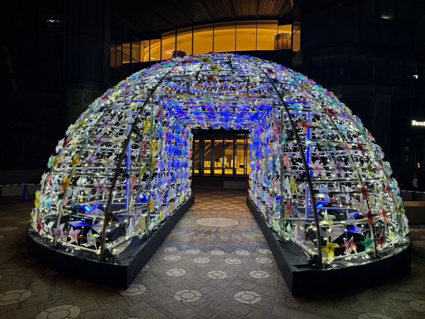✓夜はドームに加えて大階段エリアもライトアップされ、広場全体が幻想的な空間に