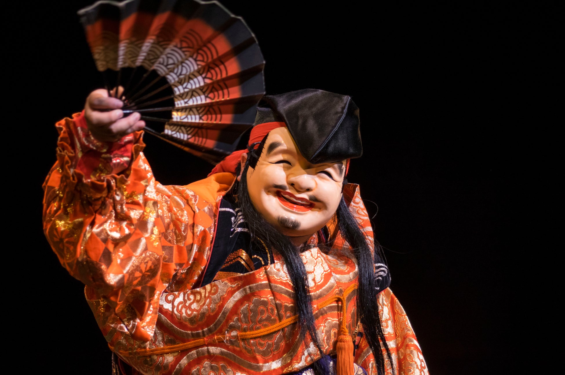 日本神話を題材に、独特の哀愁あふれる笛の音、活気溢れる太鼓囃子に合わせて、金糸銀糸を織り込んだ豪華絢爛な衣裳と表情豊かな面を身につけて舞う石見神楽は、島根県西部の石見(いわみ)地方に古くから伝わる伝統芸能です。今回の演目「恵比須」は、商売繁盛・豊漁の神として日本全国で知られる恵比須様の釣りの様子を描いたものです。