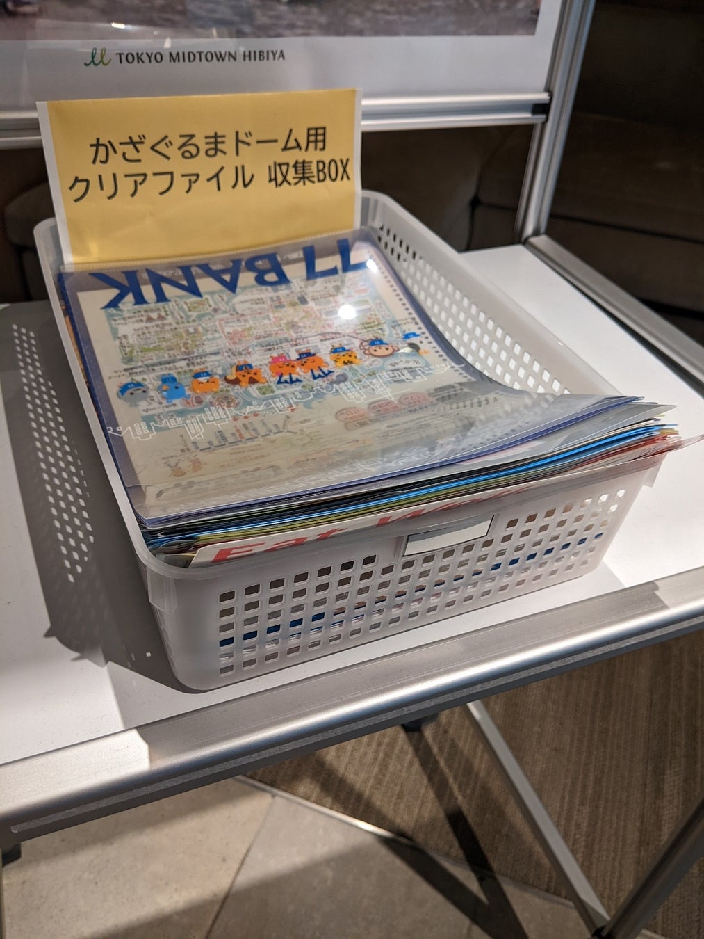 廃棄物削減、リユースを推進する取り組みのひとつとして、東京ミッドタウン日比谷のオフィステナントから使われなくなったクリアファイルを回収し、“エコかざぐるま”として装飾に再利用。10日間でおよそ200枚が集まり、ドーム全体総数約1000個のうち、およそ4割、約400個の”エコかざぐるま”にクリアファイルが活用されています。