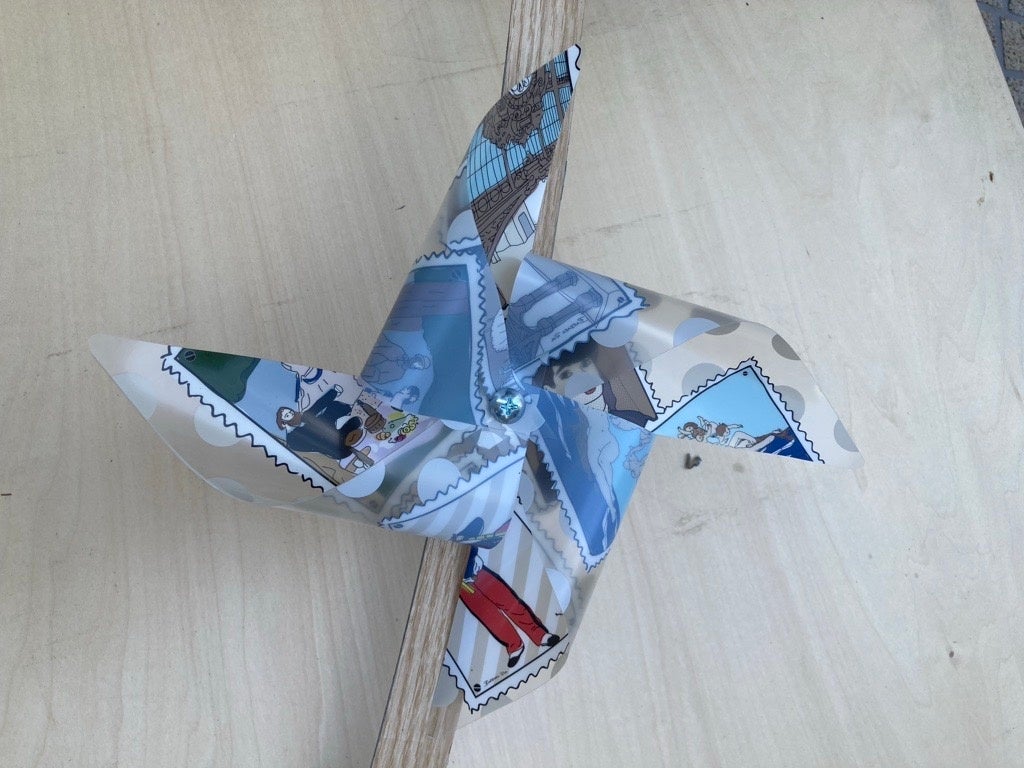 ┗エコロジカルさにも注目!約400個のかざぐるまに使用済みクリアファイルを活用