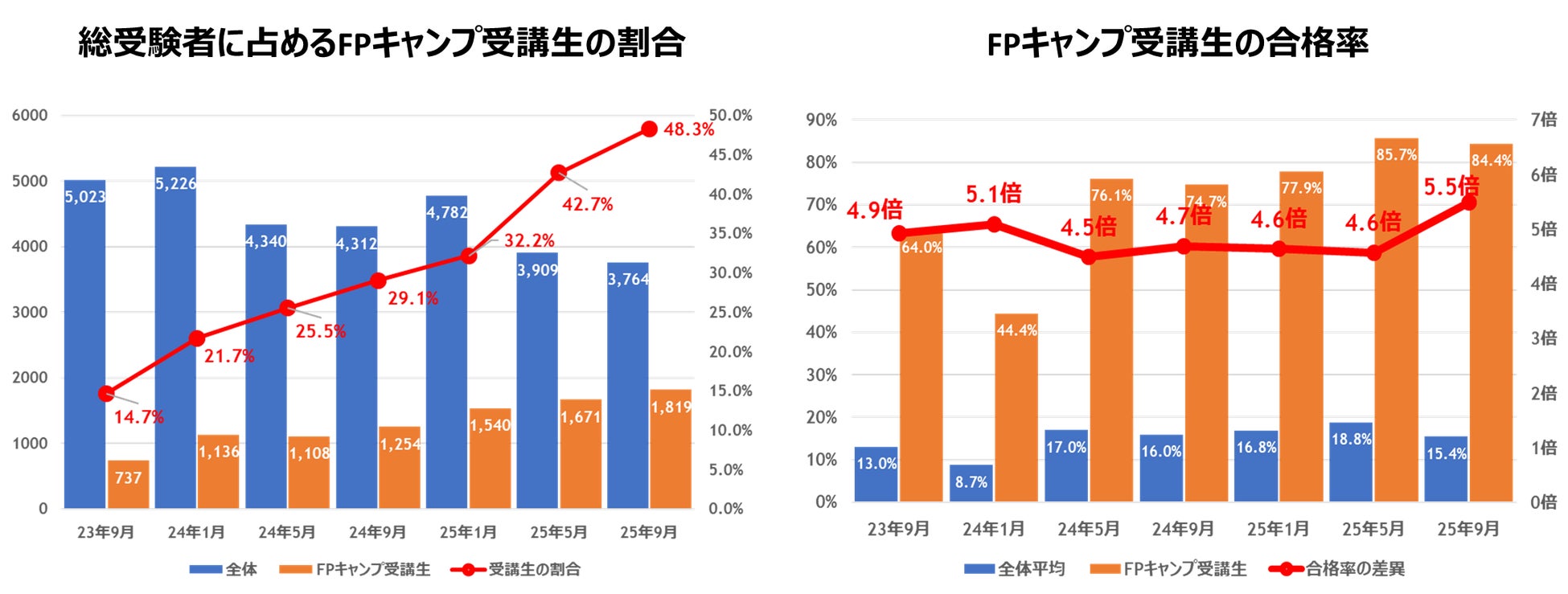 【FPキャンプ】FP1級学科試験に占める受講生割合は48%、合格率は全体の5.5倍の84%/最年少合格は19歳の大学生、受講生で初の10代合格者を輩出
