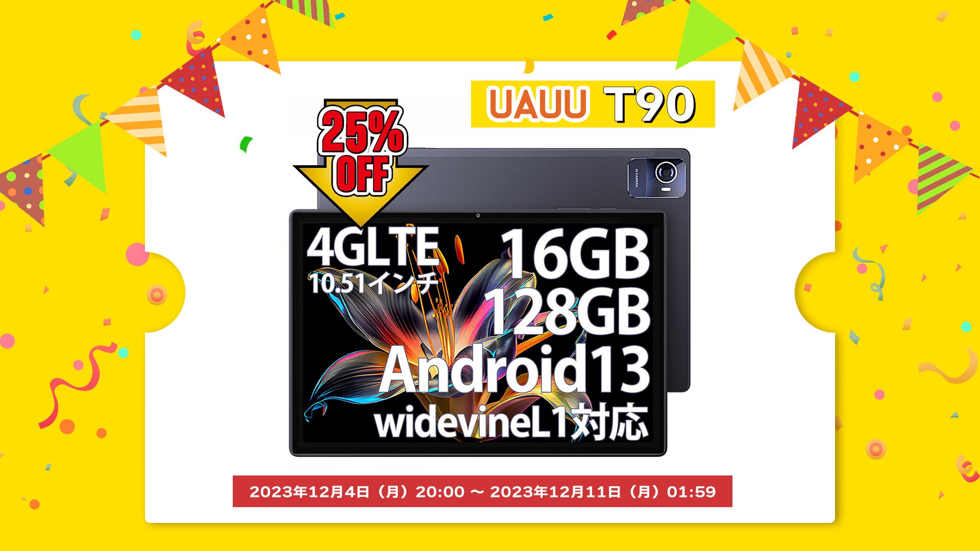 スペック紹介:Android13/10.51インチ/8コアCPU/SIMフリー/8280mAh/最大16GBRAM+128GBROM+1TB TF拡張可/1920*1200解像度/Type-C/13MP·5MPカメラ/2.4G&5G wi-fiモデル/Bluetooth 5.0/GPS GMS認証/ 顔認証/4G LTE通信