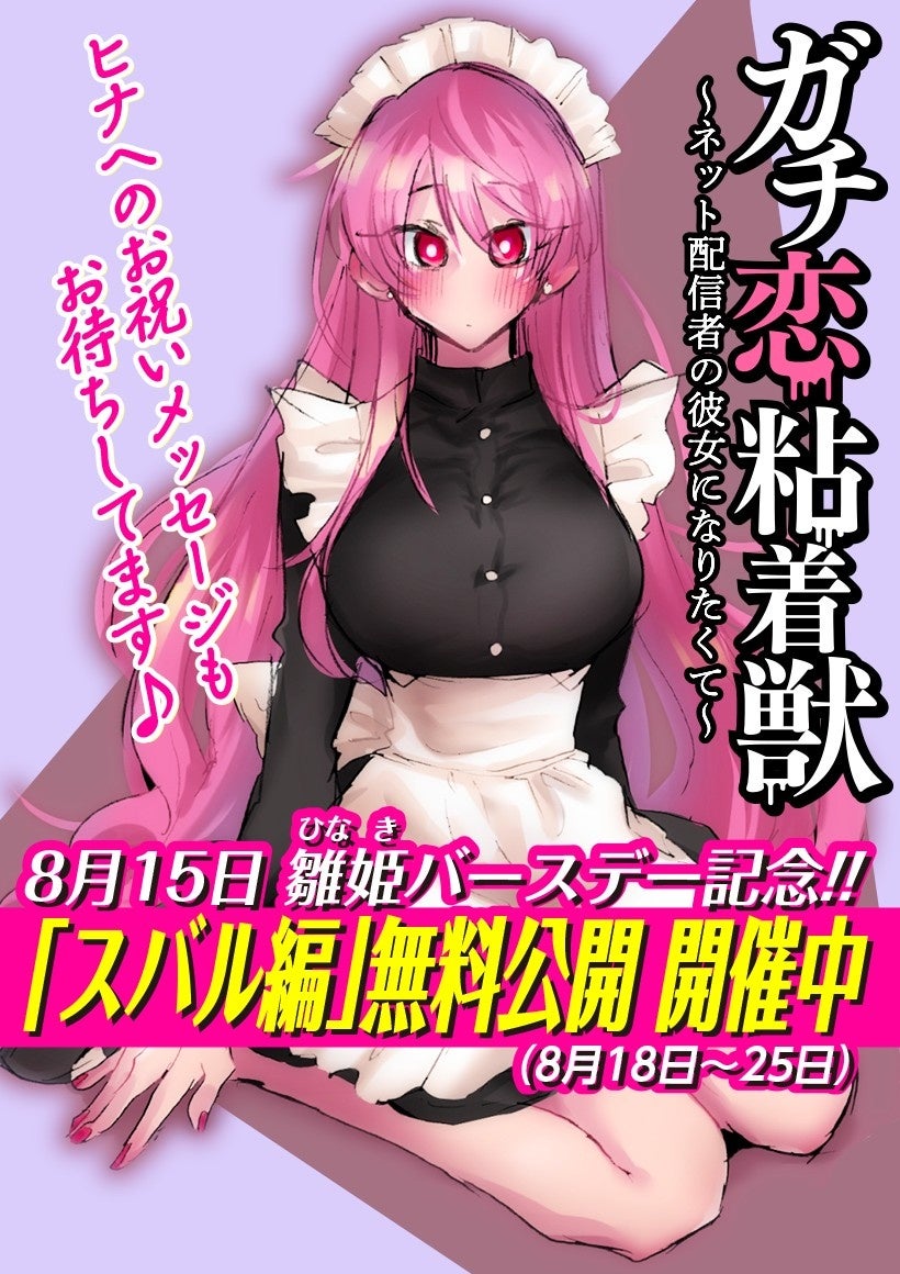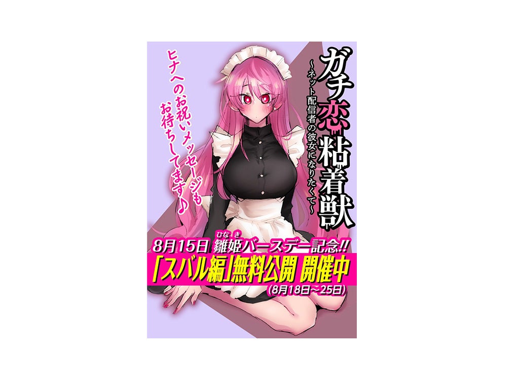 株式会社コアミックス(東京都武蔵野市)は、輝夜雛姫誕生日(8月15日)を記念し、WEBゼノン編集部にて『ガチ恋粘着獣 〜ネット配信者の彼女になりたくて〜』スバル編無料開放を実施致します。