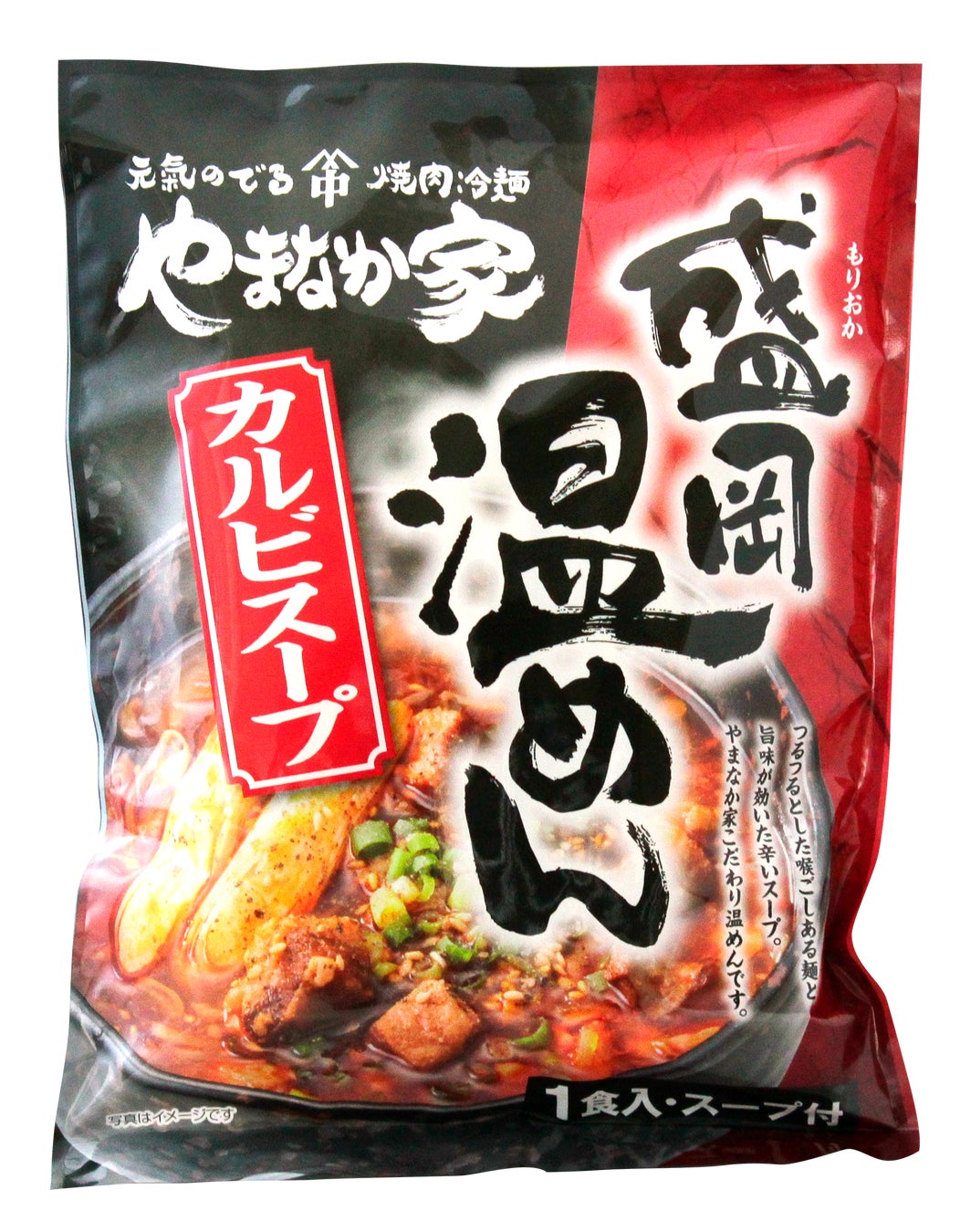 常温タイプのカルビスープ盛岡温めん。牛ダシの旨味とコクが際立つカルビスープと麺のモチモチ食感が相性抜群です。