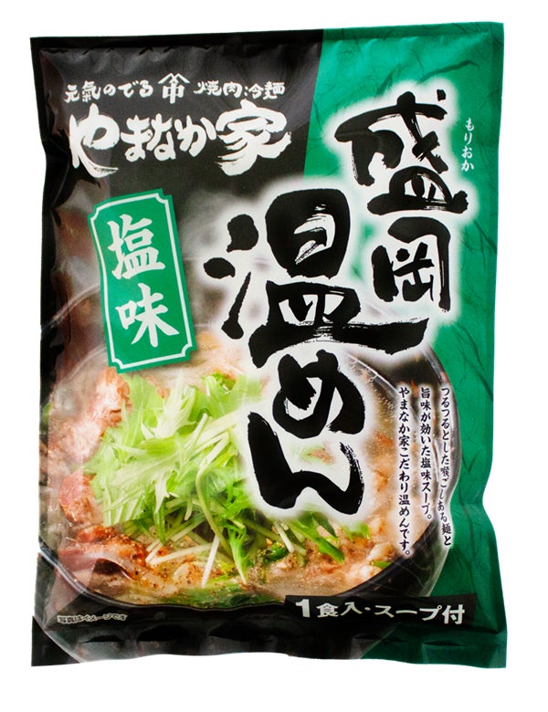 常温タイプの塩味盛岡温めん。スープに旨味が溶け込んだ体にしみわたる一杯。あっさりとしつつもコクのある味わいと、つるりとなめらかな麺の食感が自慢です。