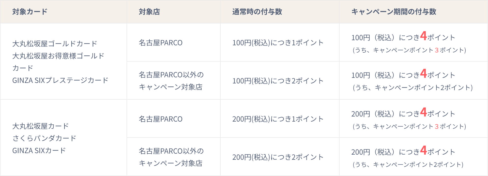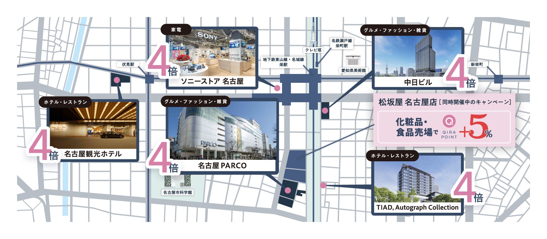 (※)名古屋PARCO・中日ビルは一部QIRAポイント4倍の対象外店舗がございます。詳細はキャンペーンページ