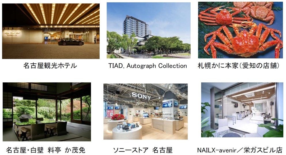名古屋の老舗店舗をはじめ、63店舗が対象店となり、名古屋のラグジュアリーホテル「名古屋観光ホテル」や「TIAD, Autograph Collection」のレストラン・宿泊、有名店の「ソニーストア 名古屋」「名古屋・白壁 料亭 か茂免」「札幌かに本家(愛知の店舗)」、ネイルの「NAILX-avenir/栄ガスビル店」まで、さまざまなシチュエーションに合わせてQIRAポイントがたくさん貯まります。名古屋・栄周辺に立ち寄る際にはぜひお気軽に参加してお得にショッピングをお楽しみください。