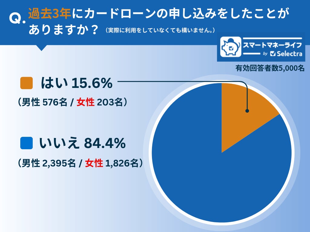 カードローンを申し込んだことのある人は全体の15.6%でした。(5,000人中、779名)
