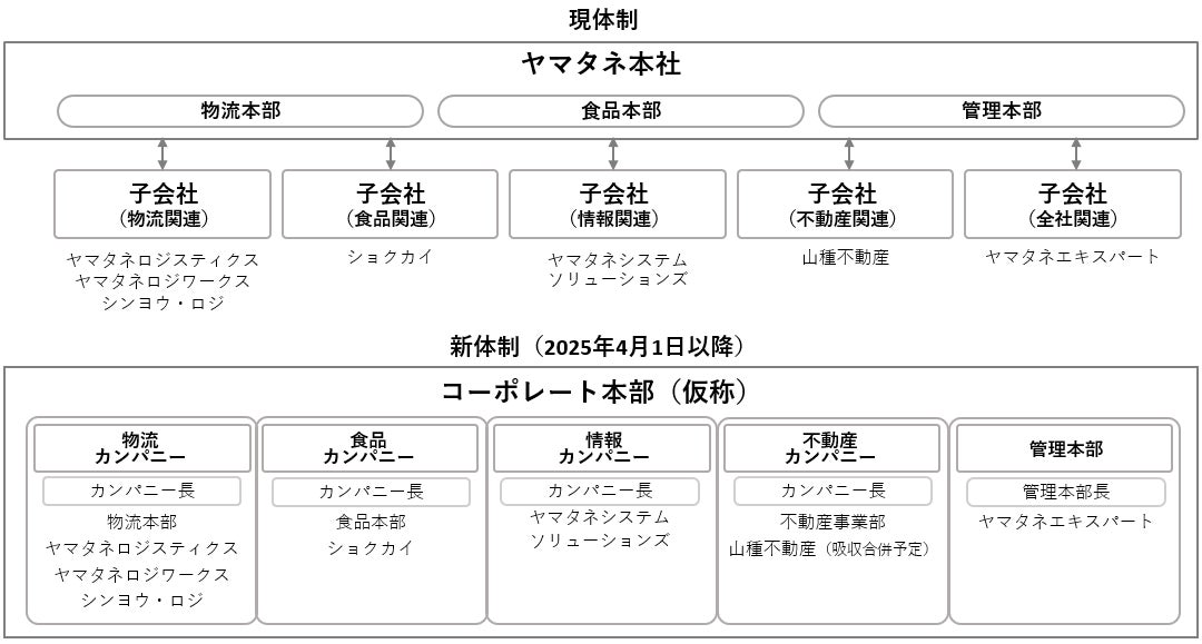 当社グループは長年にわたり物流関連、食品関連、情報関連、不動産関連の4事業を事業部制での経営体制により事業を展開しておりましたが、昨今の資本市場より求められております資本コストや株価を意識した経営の実現に向け経営体制を強化すべく、「カンパニー制」へ移行いたします。