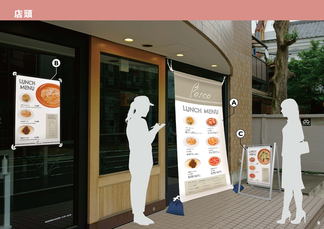 飲食店や小売店の店頭でのメニュー表示やポスター掲示に便利なアイテムを紹介。