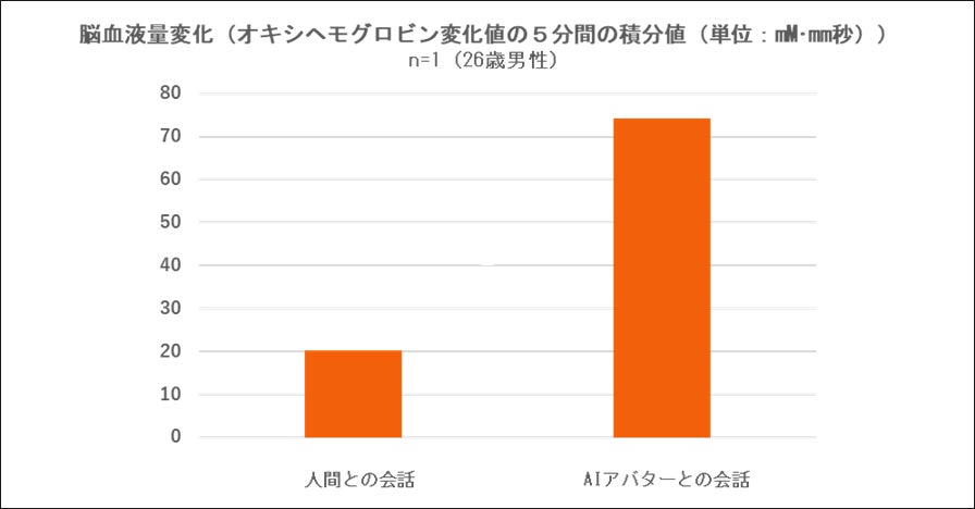 本実験では、被験者が“人間と会話している場合”と“AIアバターと会話している場合”、それぞれにおける脳血液量の変化(オキシヘモグロビン変化値)を測定し、対話中の脳の反応を比較しました。