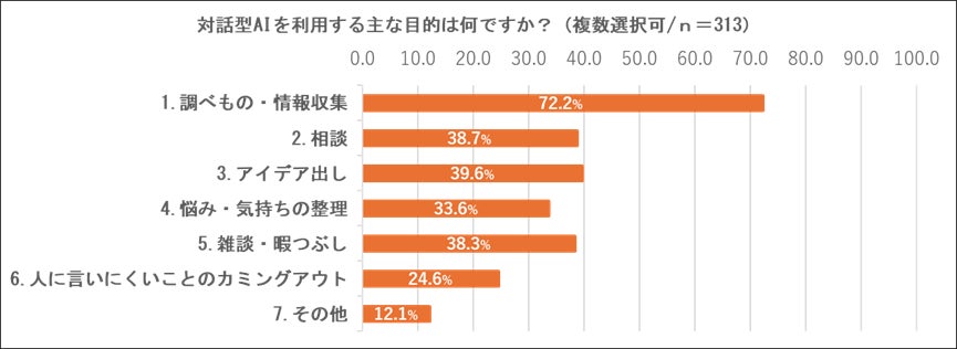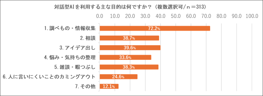 対話型AIの利用目的は「調べもの」が中心も、受容的な使い方も一定数