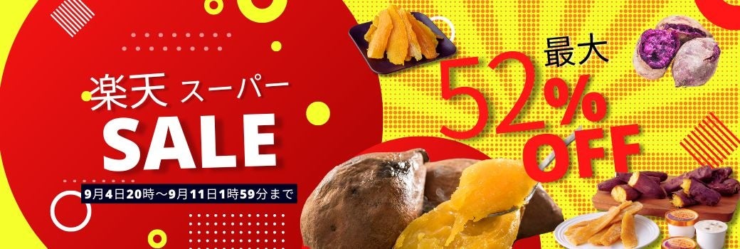 スーパーセール中の9月5日(木)と10日(火)は1等は最大100%ポイントバックキャンペーンに参加しております。ぜひお得に購入できる可能性のあるイベントにエントリーして芋國屋の商品をご購入ください!