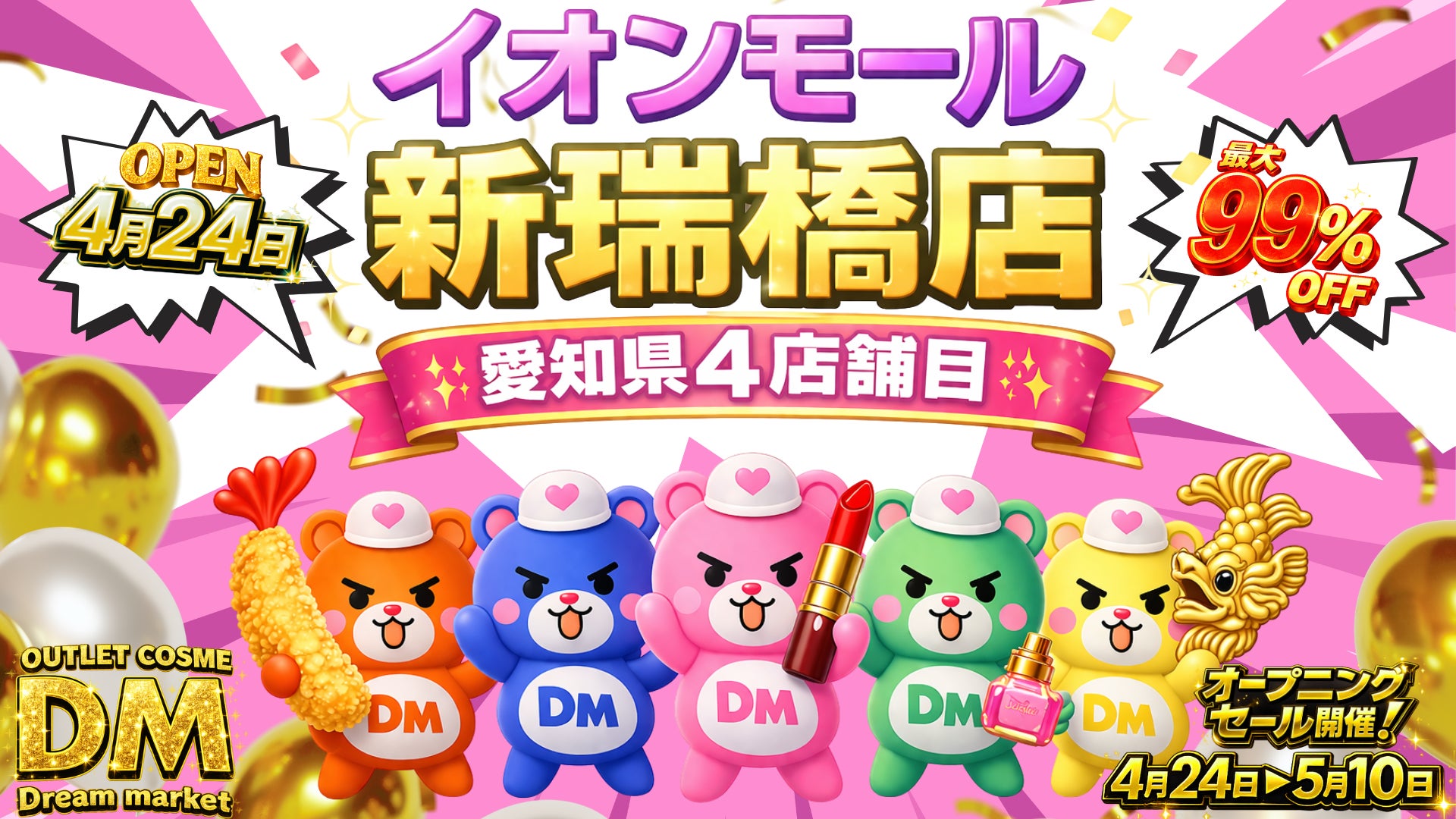株式会社Trust(本社:大阪府東大阪市、代表取締役:多川 一馬)が運営するアウトレットストア「Dream market」は、2026年4月24日(金)愛知県に4店舗目となる「イオンモール新瑞橋店」をオープンいたします。