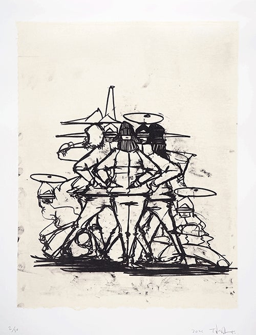 Many printmaking works are created in collaboration between artists and printmaking studios.