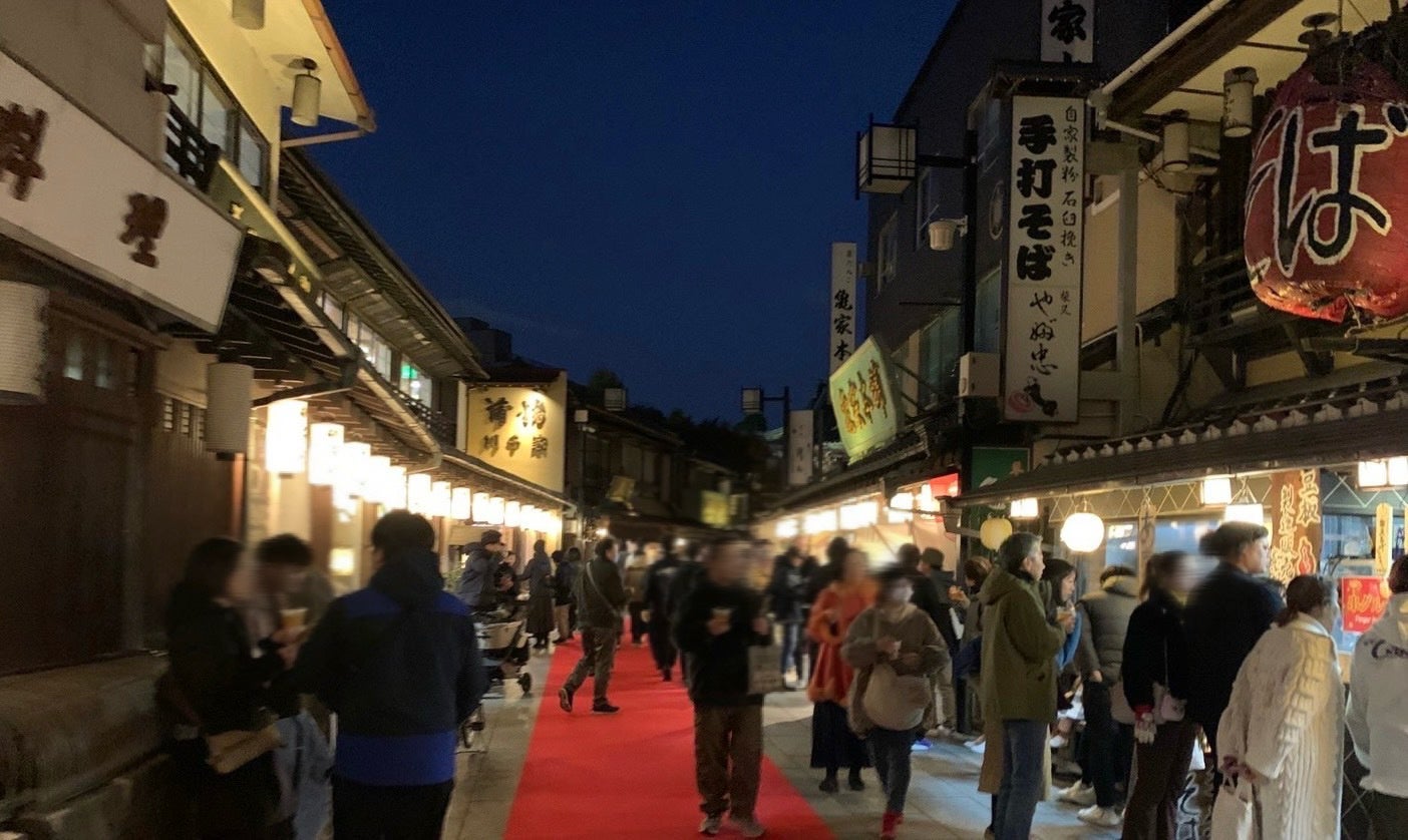 帝釈天参道にレッドカーペットを敷き、音楽演奏や串グルメ・クラフトビールなどの販売を行います。また、同時イベントとして葛飾区観光協会では、11月23日(土)・24日(日)午後5時~9時に、山本亭・柴又公園をメインに紅葉のライトアップを行います。
