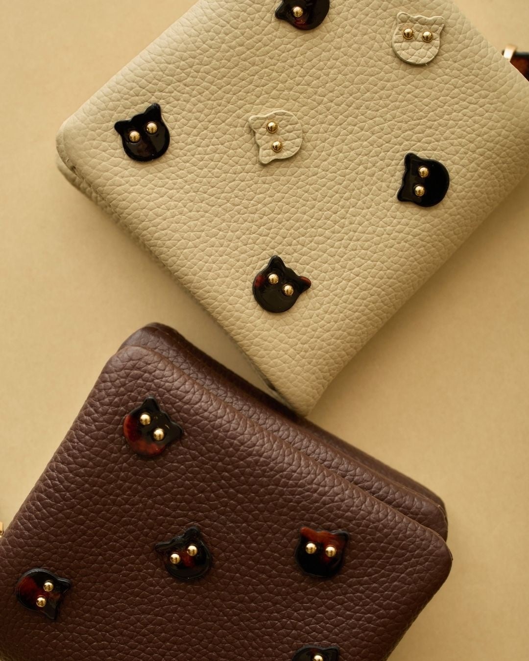 ふっくらとした上質な牛革に、さりげなく散りばめた猫モチーフ。
