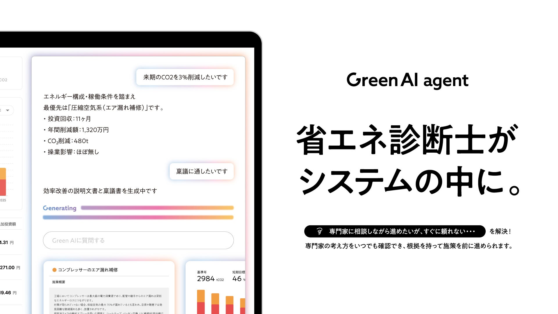 “答えるAI”から“進めるAI”へ。省エネ診断士の知見をもとに、施策判断から社内説明、削減実行まで支援