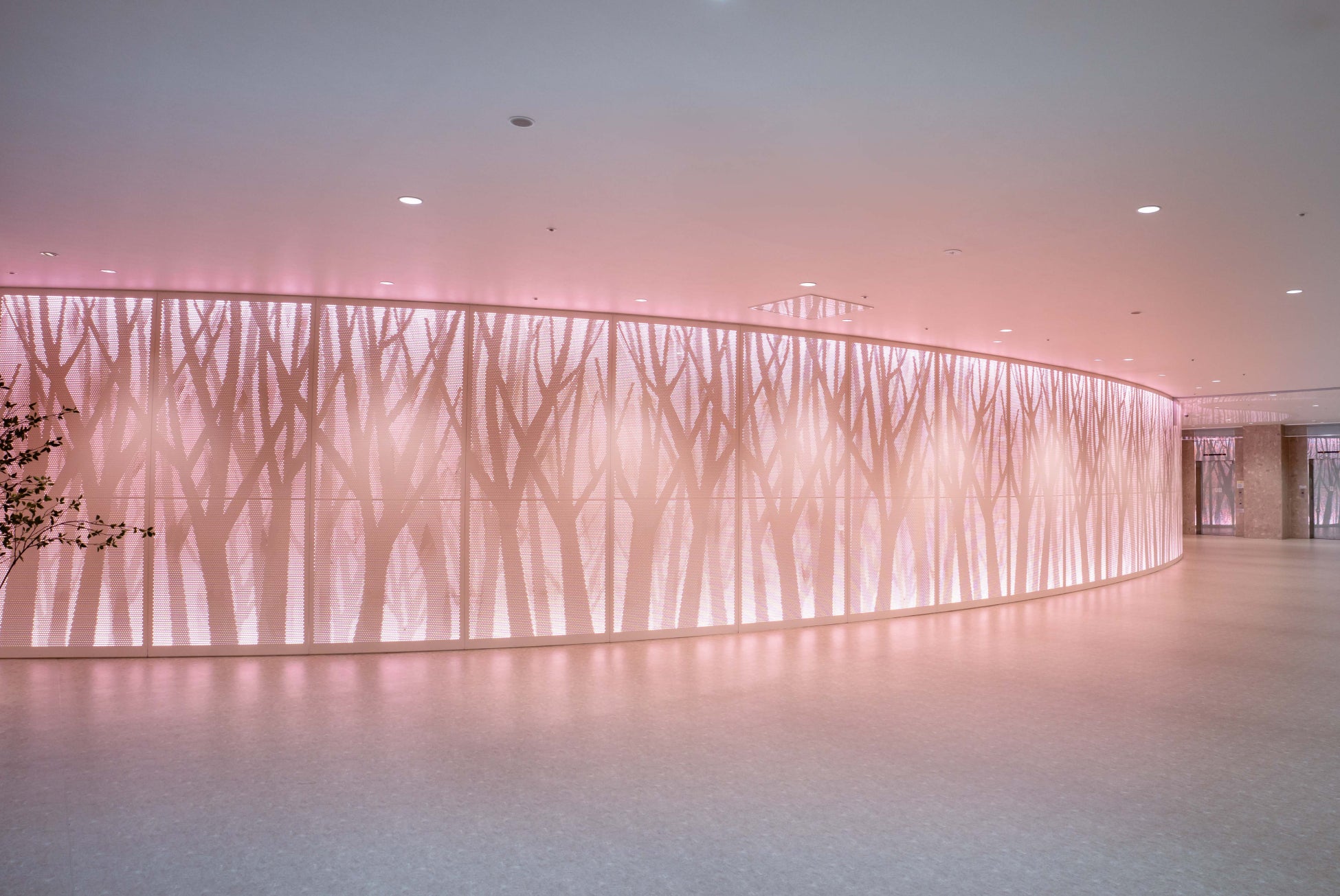 壮大なパンチングメタルウォールにたくさんの夢を咲かせます