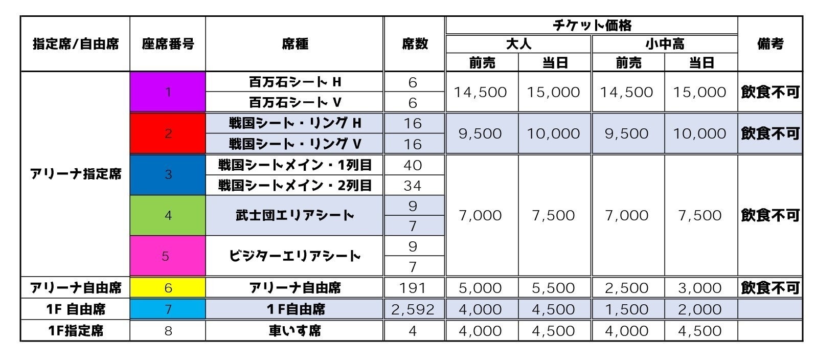 「自由席」については、コートレベル可動席を「アリーナ自由席」、また、1Fスタンドも全て「自由席」とし、 ファミリーやグループで気軽に観戦していただけるよう設定しました。