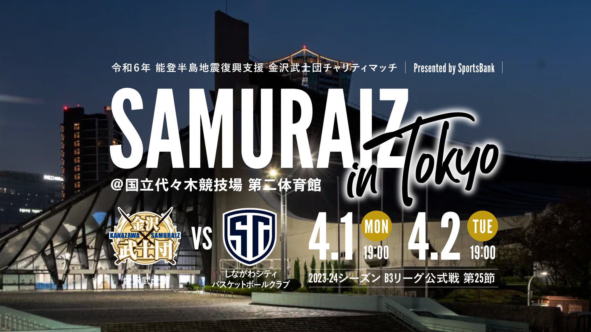 株式会社Asian Bridge(所在地:東京都港区/石川県金沢市/富山県富山市、代表取締役:小西 広恭)が開発・運営するスポーツ特化型SCC(※ソーシャルコミュニティコマース)プラットフォーム「SportsBank」が運営事務局兼プレゼンティングパートナーを務め、2024年4月1日、2日の両日にて国立代々木競技場 第二体育館で開催するB3リーグ2023-24 第25節 金沢武士団(KANAZAWA SAMURAIZ) VS しながわシティバスケットボールクラブ戦「令和6年能登半島地震復興支援 金沢武士団チャリティマッチpresented by SportsBank」において、本日3月19日(火)18時より、全指定席チケットを一般発売開始いたします。