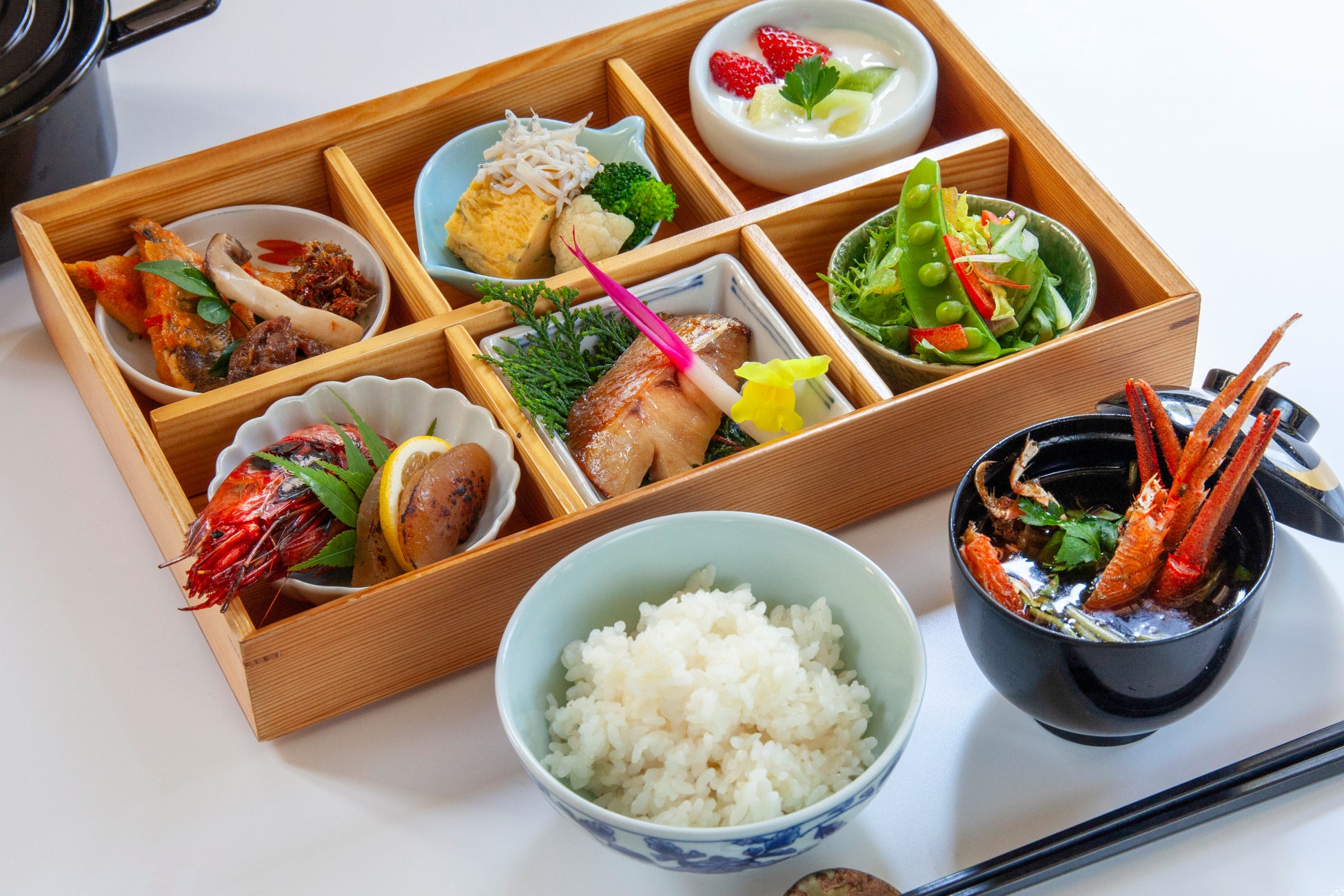 お部屋でのお食事をご希望のお客様には、特別なお弁当をご用意いたします。メインダイニングルームのフランス料理、または六角堂の鉄板焼きを、お好みのお弁当スタイルでお楽しみいただけます。