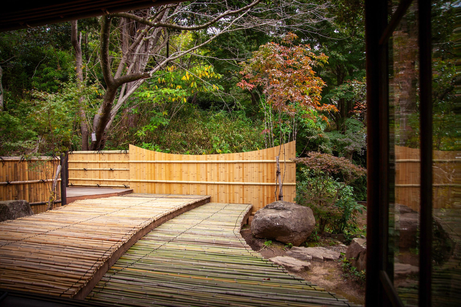このたび「東の庭」に、三河湾の“さざ波”をイメージしたデザインの竹デッキと竹塀が完成いたしました。