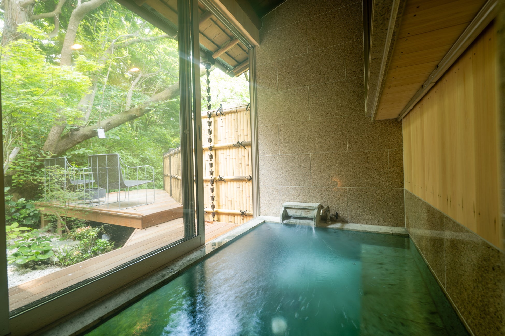 温泉は無色透明のアルカリ性単純泉で、“美白泉”とも呼ばれる、肌触りしなやかな湯を採用。広々とした湯船やパウダールームからは自然景観を楽しめます。 また、ロウリュサウナや外気浴スペースも整え、深いリラクゼーションを誘います。