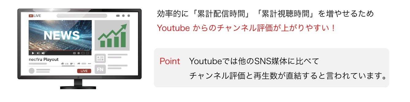 ネクフルはこの課題に対し、アーカイブを24時間ライブ化し、継続的に視聴される仕組みを作る「necfru Playout」を提案し、今回の導入に至りました。