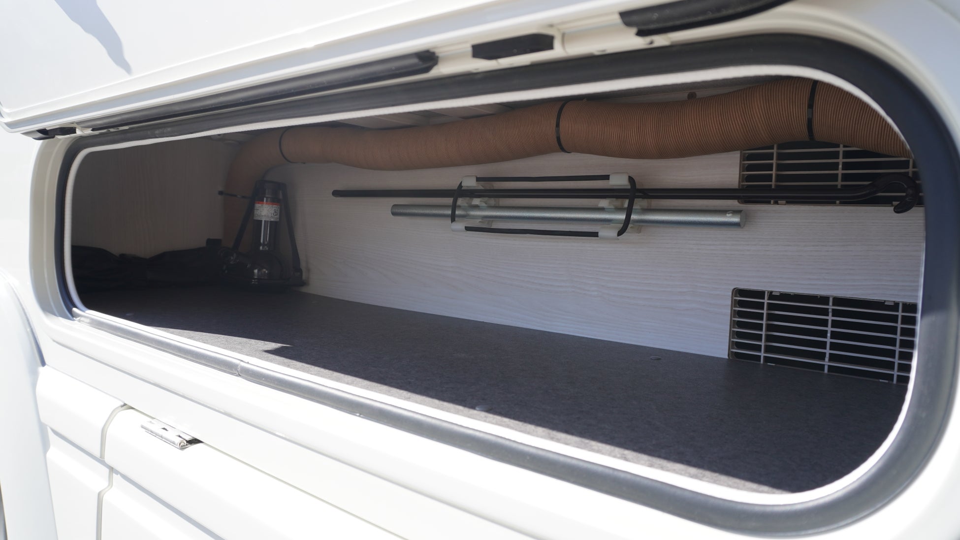 リア床下外部収納庫(右):濡れたものや臭いのあるゴミなどを保管できます。