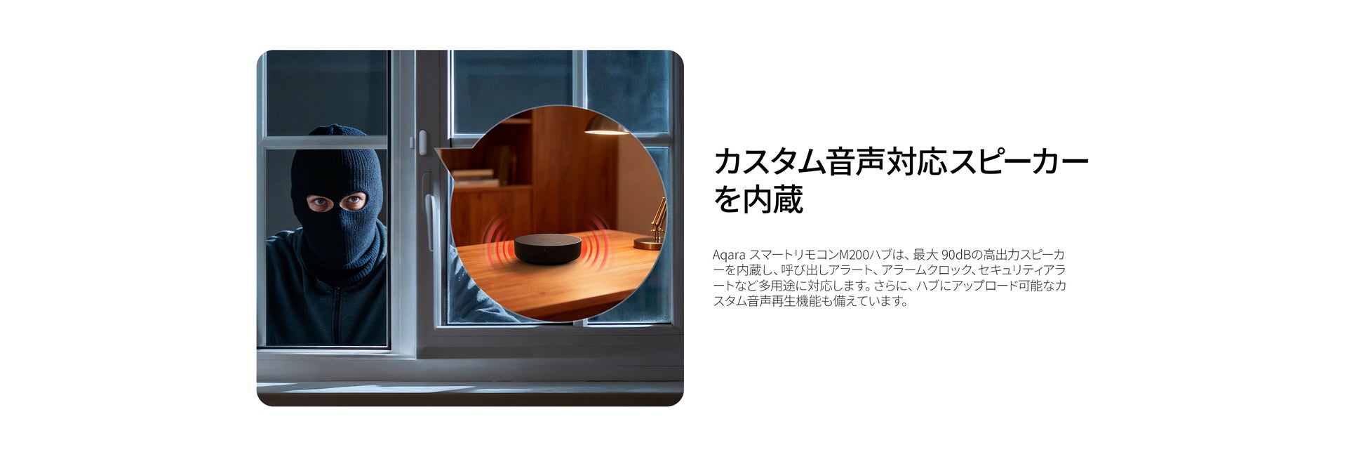 スマートリモコンM200ハブは内蔵スピーカーを搭載しており、ドアベル通知やセキュリティアラート、アラームクロック、カスタムオーディオメッセージなど、さまざまな用途で利用可能です。