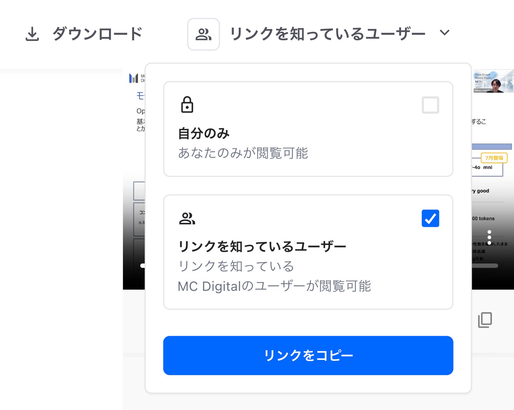 同一環境に所属するユーザーに対し、リンクを共有するだけで、会議の動画/音声データ、文字起こしテキスト、議事録の全てを確認できるようになりました。これにより、チーム内でのコラボレーションや議事録のスムーズな確認作業を促進します。なお、今回リリースされたリアルタイム議事録ページは、デフォルトで共有状態となるため、会議参加者全員が常に最新の情報を参照でき、会議内での合意形成を一層加速させます。