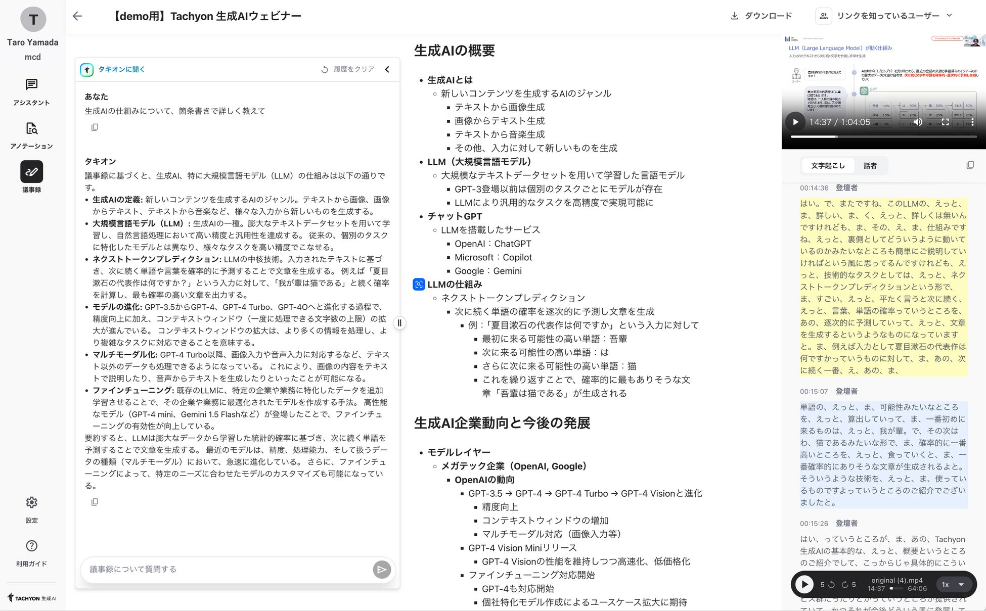 業界最先端の「リアルタイム議事録機能」を法人向け生成AIサービス「Tachyon 生成AI」に搭載
