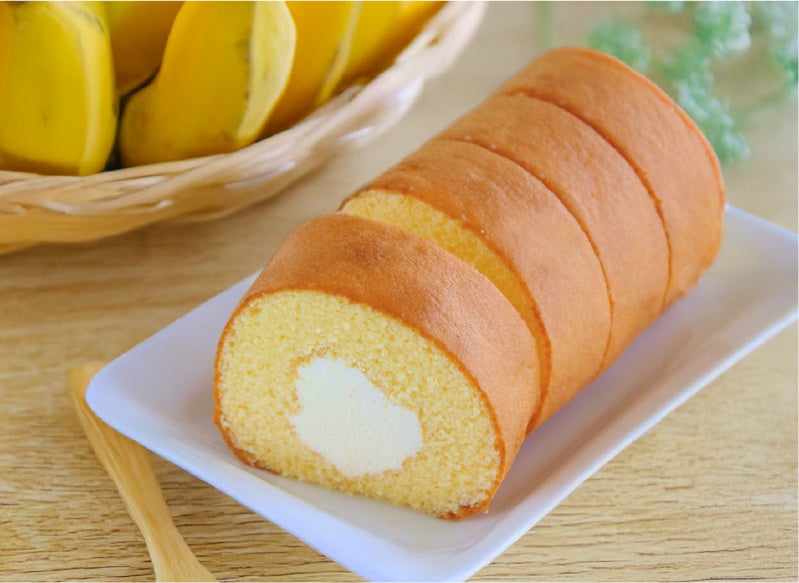 しっとりとした牛乳仕込みのスポンジケーキで、神バナナの華やかな香りが広がるホイップクリームを包みました。神バナナを皮ごと使用したペーストを贅沢に練り込むことで、自然な甘みと豊かな香りをお楽しみいただけるロールケーキに仕上げています。