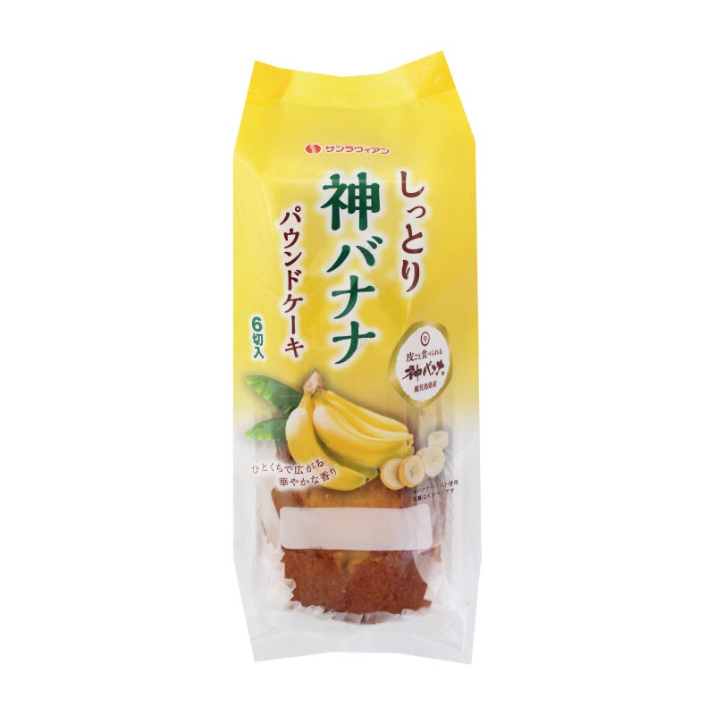 神バナナペーストを生地に練り込み、しっとりと焼き上げたパウンドケーキ。ひと口ごとに、神バナナならではの豊かな香りと上品な甘みが広がります。大人から子どもまで楽しめる、やさしい味わいに仕上げました。